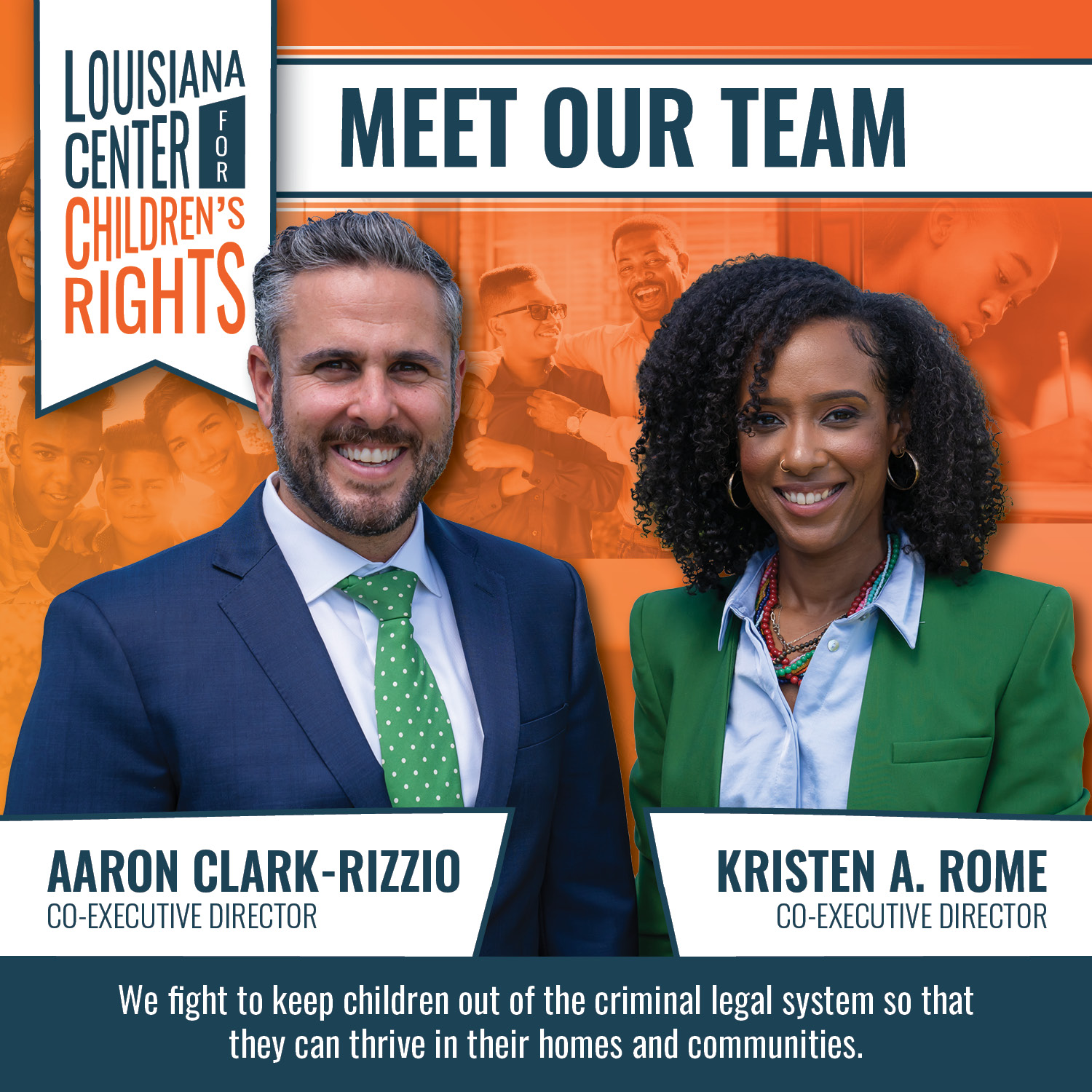 “I am proud and excited to welcome Kristen Rome to the LCCR expanded leadership position, Co-Executive Director,” said LCCR Board Vice Chair Troy Bell. “Kristen will bring to this role passion for the work that we do, a stellar litigation track record on the behalf of our youth, and the experience needed to foster an excellent working relationship between LCCR and the local communities it serves.” Our restructuring plan will strengthen core operations, and increase our impact as well as diversify the ways we create that impact. With these changes, LCCR will be poised to further our mission and will have the diverse leadership to sustain it. We have great hope for the way this redesign will prepare this incredible organization for a new era and lead the way for our vision of a Louisiana where every child, no matter their race or class, is free to be a kid and supported in becoming a healthy adult.